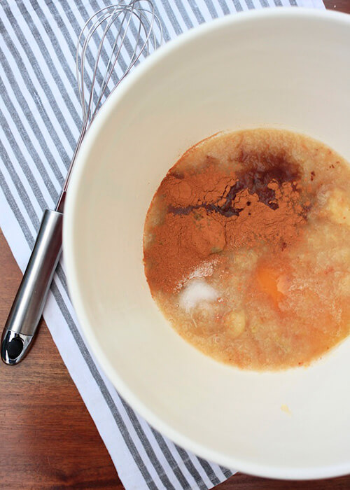 Pre-heat the oven to 160°C. In a large bowl, whisk together the apple compote, honey, vanilla, cinnamon and salt. Add the muesli base mix and stir well to combine.
