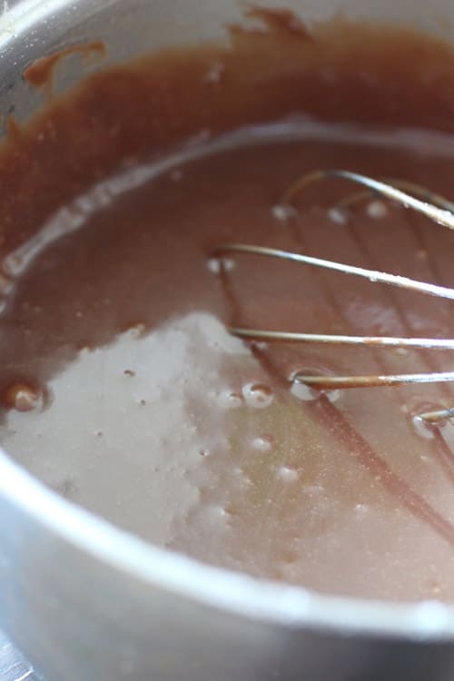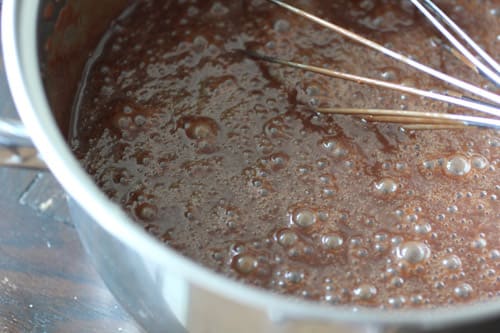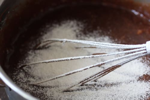 Next, whisk the eggs, sugar and vanilla and then slowly pour the chocolate mixture into the eggs until you have a smooth, velvety gooey mixture. At this stage you can add anything else you want; nuts, cinnamon, nutella, more nutella......