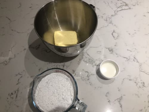 Whisk the butter on a high speed until it changes pale in colour. Add the icing sugar and milk and whisk it of 5 minutes until it is not grainy. My stand mixer made very easy work of this! Then, add half of the cooled ganache and whisk on a high speed.