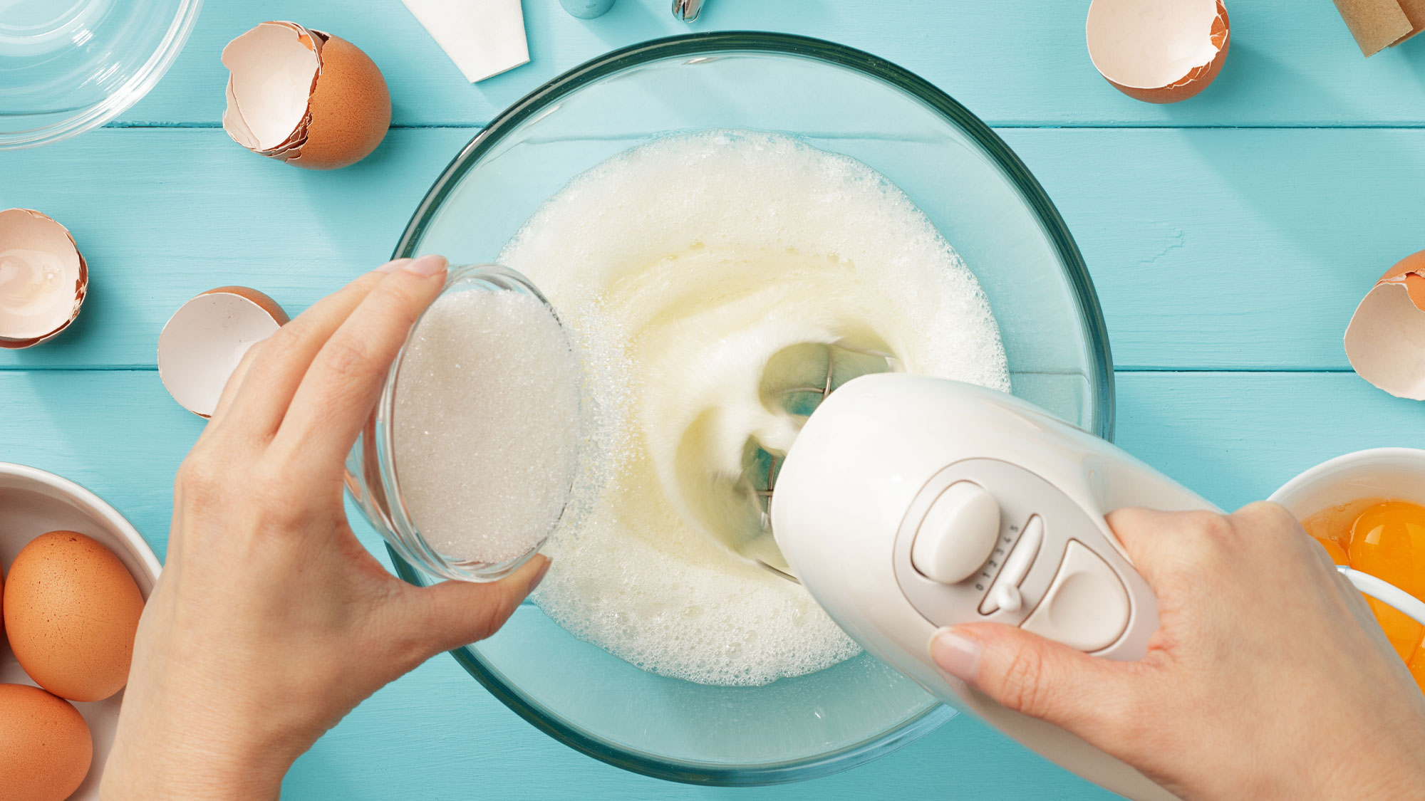 In a large mixing bowl, crack in the eggs and add the caster sugar and salt. Whisk it all together until the mixture looks pale and slightly frothy. Stir in the vanilla extract now if you're using it.