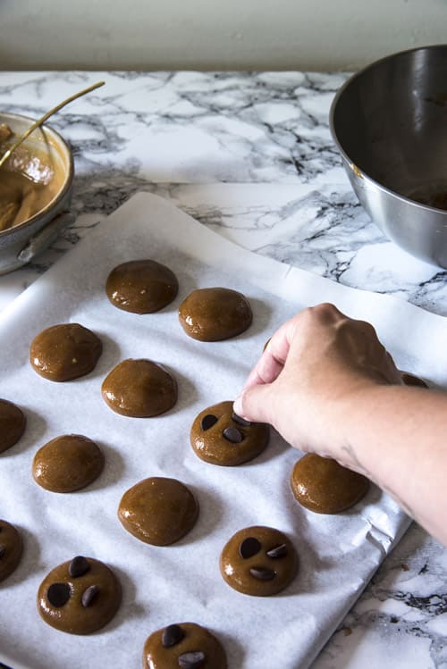 Roll the pieces between your hands into balls, then place onto the tray pressing down just a tiny bit (to keep them gooey in the middle).