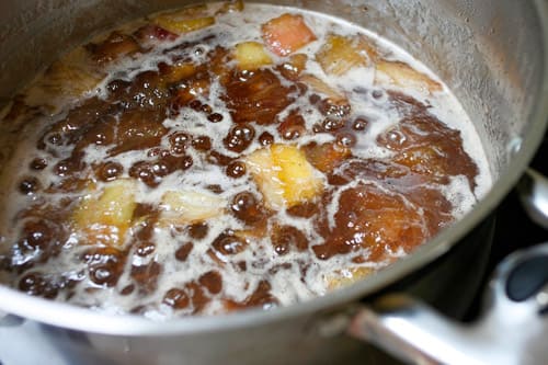 At this point your sugar will start to crystallise – continue to leave this to boil for another 5 minutes, making sure to stir frequently.