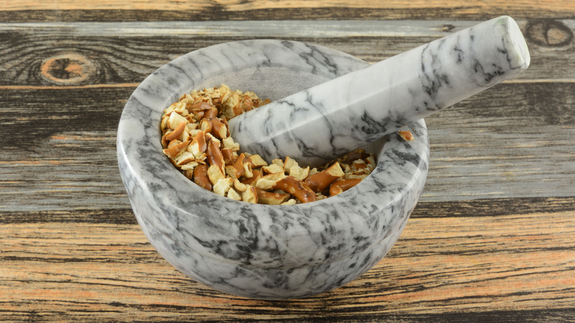 Fold in the crushed pretzels, keeping some nice chunky bits for crunch.