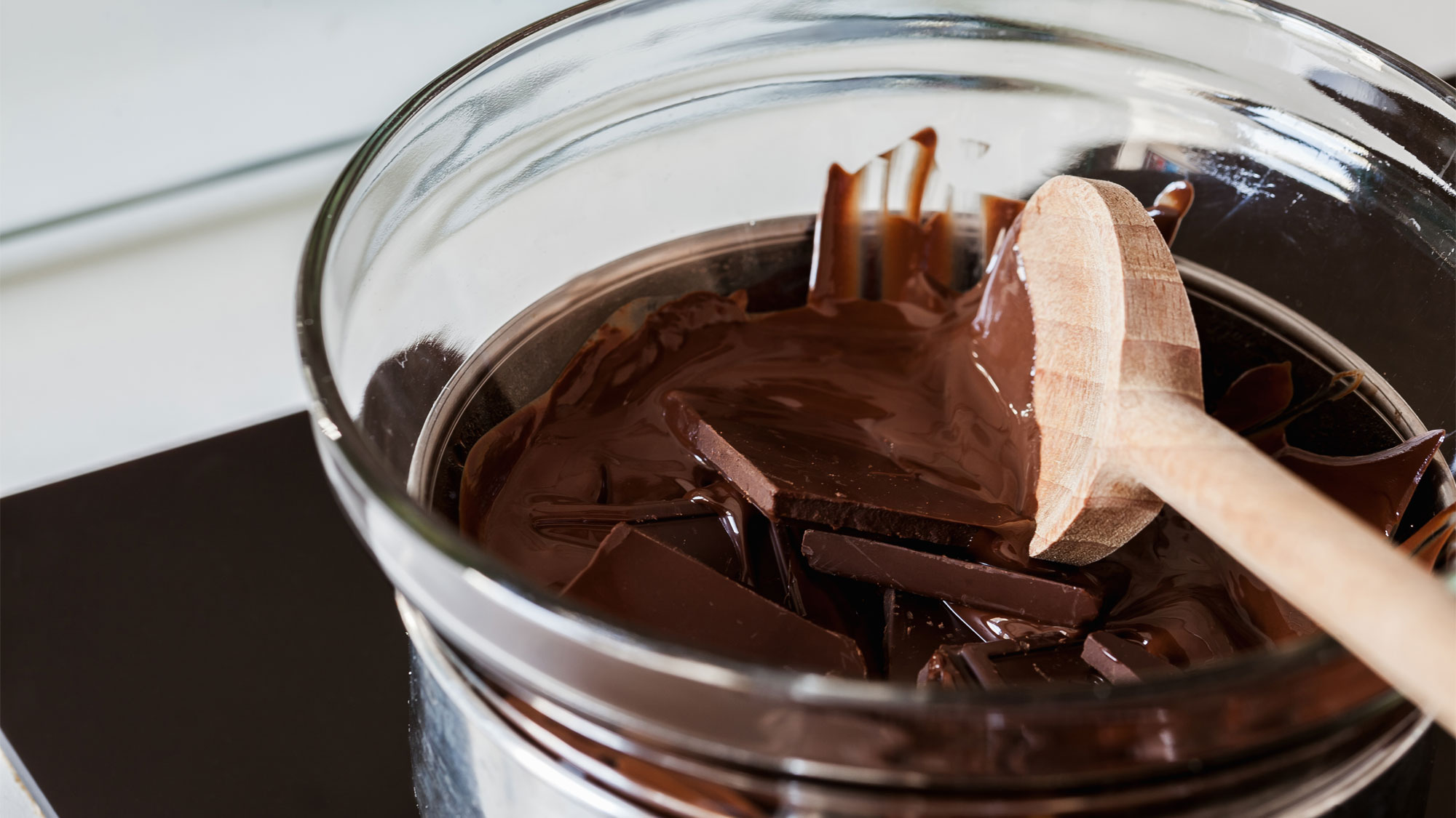 Melt the dark chocolate in a heatproof bowl over simmering water. Pour onto a lined baking tray and spread evenly.
