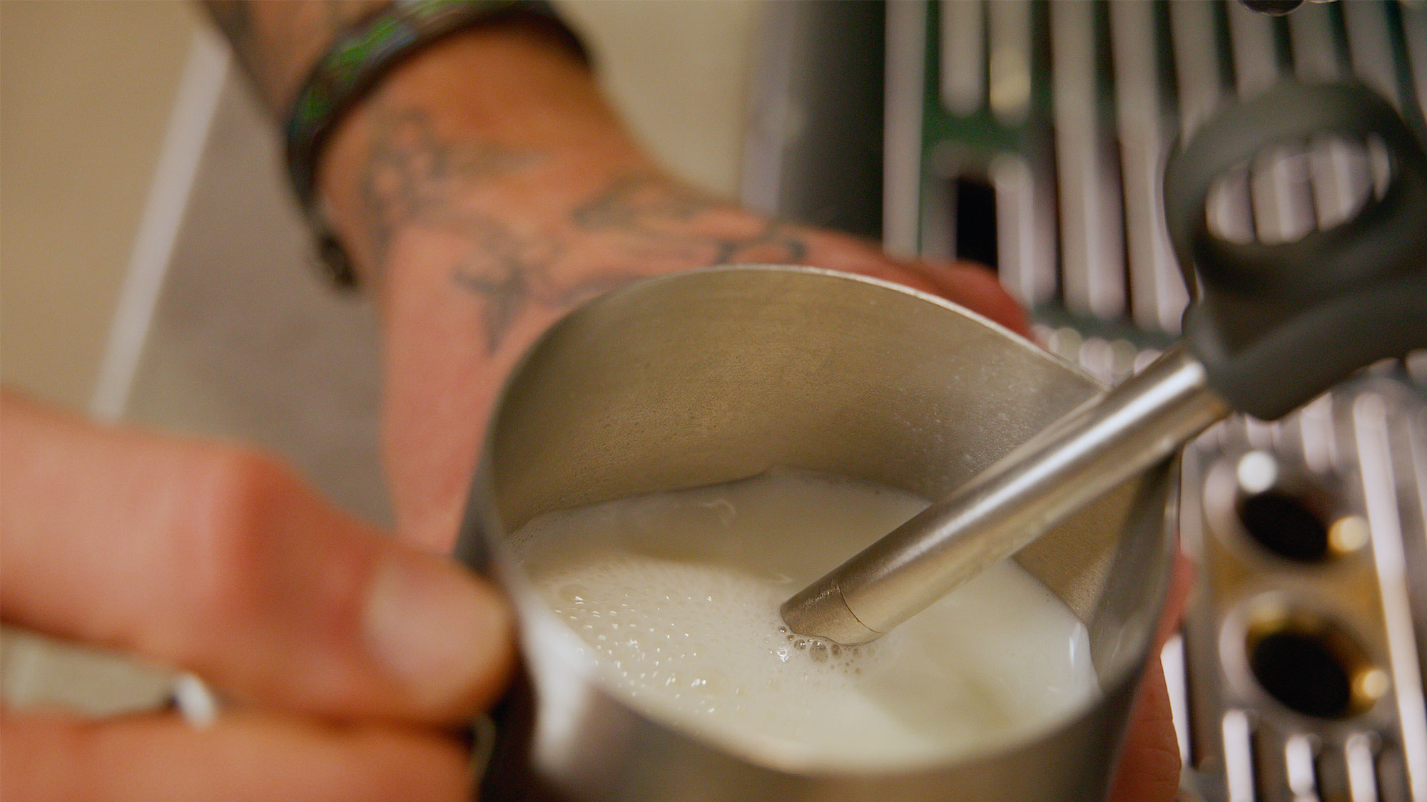 Steam the milk at around 65°C, stretching it out so the volume goes up around 50% - that’s the foam building.
