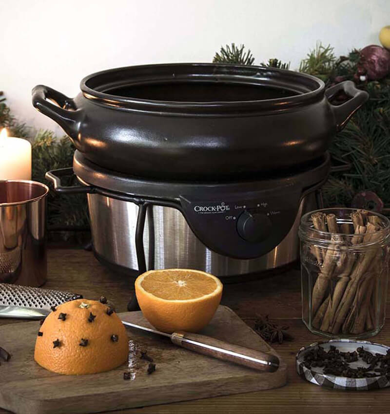 If you’re looking to serve it later, take the orange halves, star anise and cinnamon sticks out and turn the Crockpot to warm.
