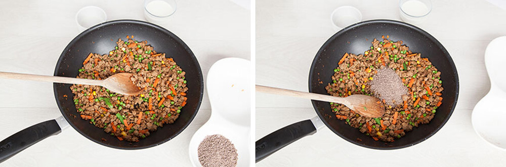 Add the frozen vegetables and fry for another couple of minutes until defrosted. Take off the heat and stir in the gravy granules.