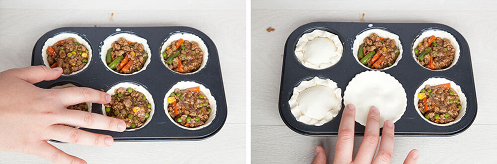 "Who says vegetarians can’t have delicious, meaty pies with oodles of rich gravy? These little pies use vegetarian mince and gravy to create moreish little treats that are gorgeous hot or cold. The filling is made on the hob, but the kids can help by tipping in ingredients, and can take charge when it comes to the assembly."