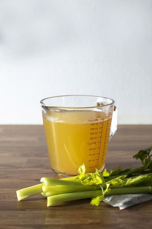 - Once done, pour the stock through a sieve