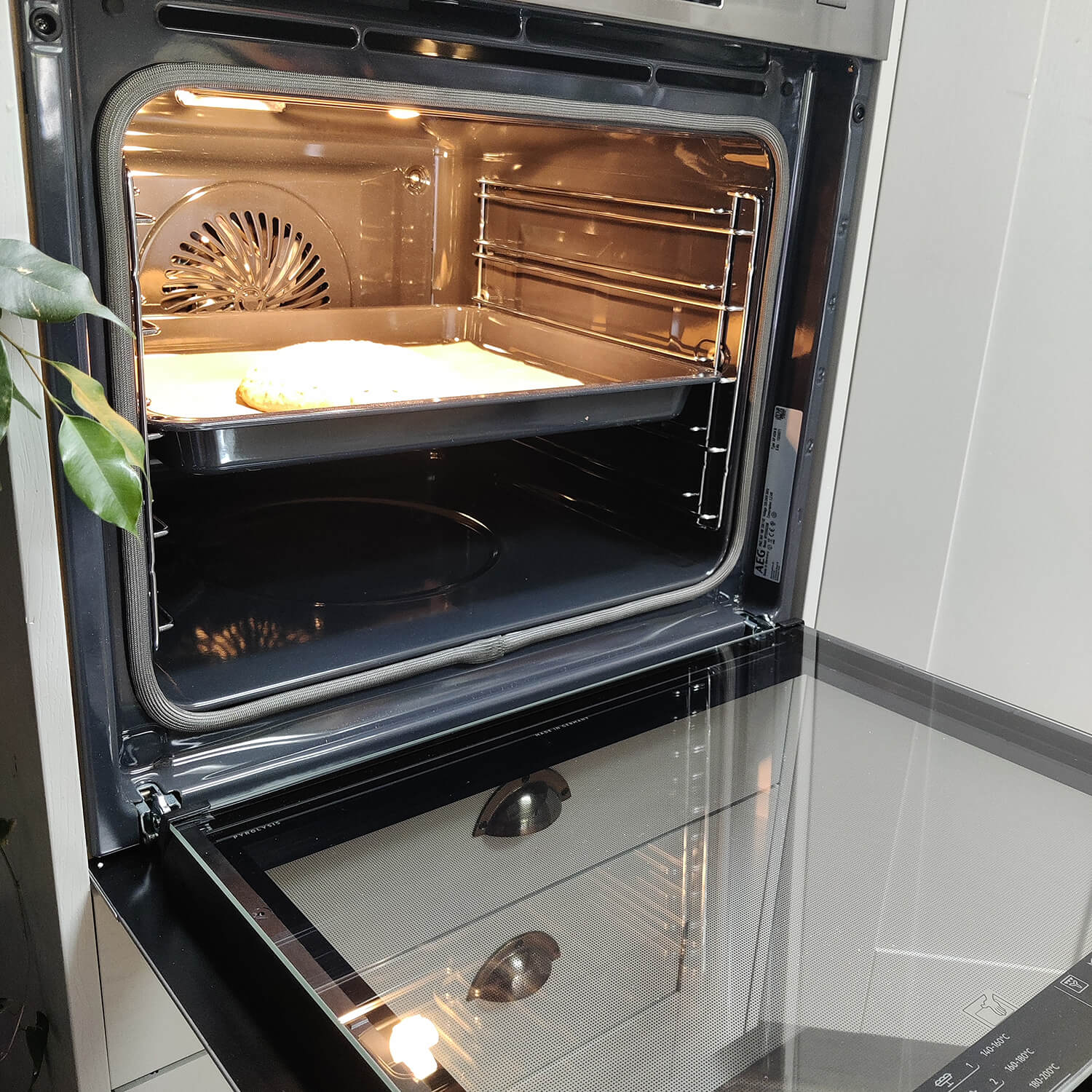The oven fits perfectly in the space of our existing single oven, and it blends in well with the appliances we already own. We were most excited about the SteamBake function, as we do already do a lot of home baking. We were also looking for an oven that was easy to clean, so the Pyrolytic cleaning function is something else we were excited to test out.