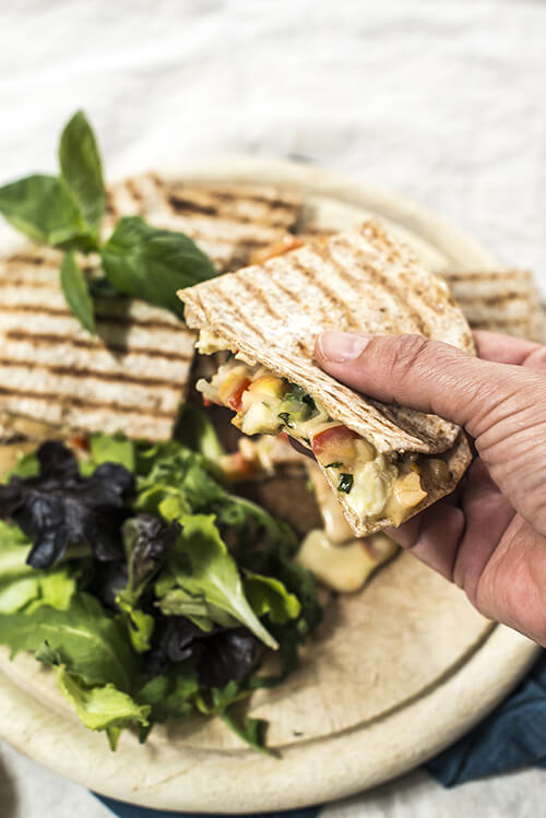 We're talking fusion cuisine with this delicious camembert quesadilla with tomato and apple filling!