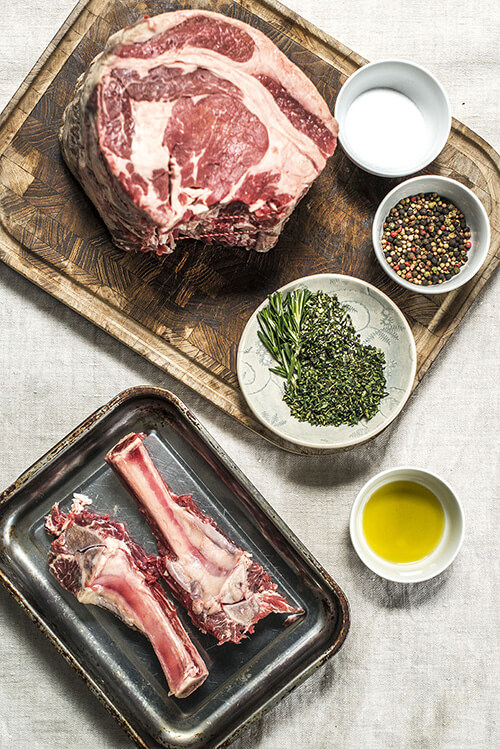 Preheat oven to 225°C. Carefully remove the meat from the bone. Put the bone rack in a roasting pan and place in the oven for about 15 minutes.