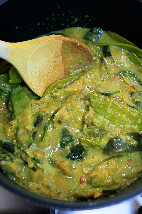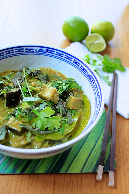While the list of ingredients for this is long, it is a very easy dish – all the spice paste ingredients go in the blender, then you have your curry base – just add garlic, shallots, chilli, lime leaves, coconut milk and stock. You can also vary the vegetables used – butternut squash, pumpkin or sweet potato work very well, as do cherry tomatoes and baby corn.