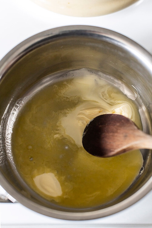 In a pan, melt 60g of the butter, then stir in the flour to make a paste