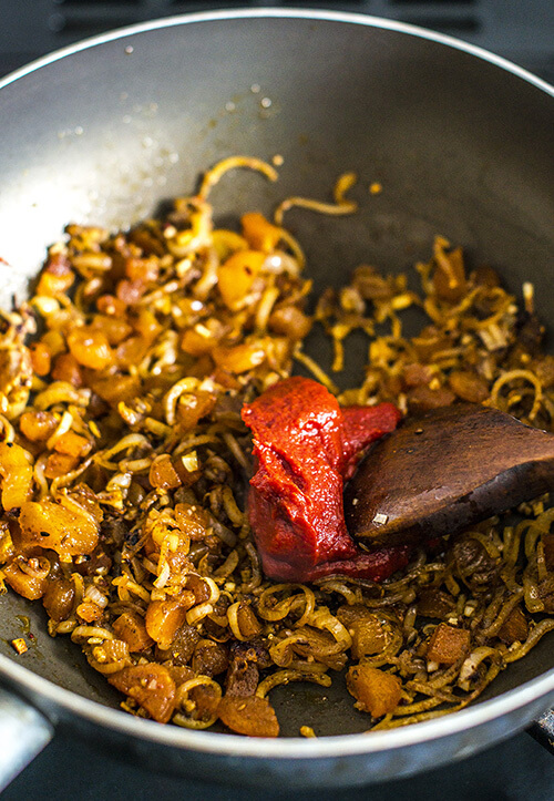 Add the tomato purée and stir.