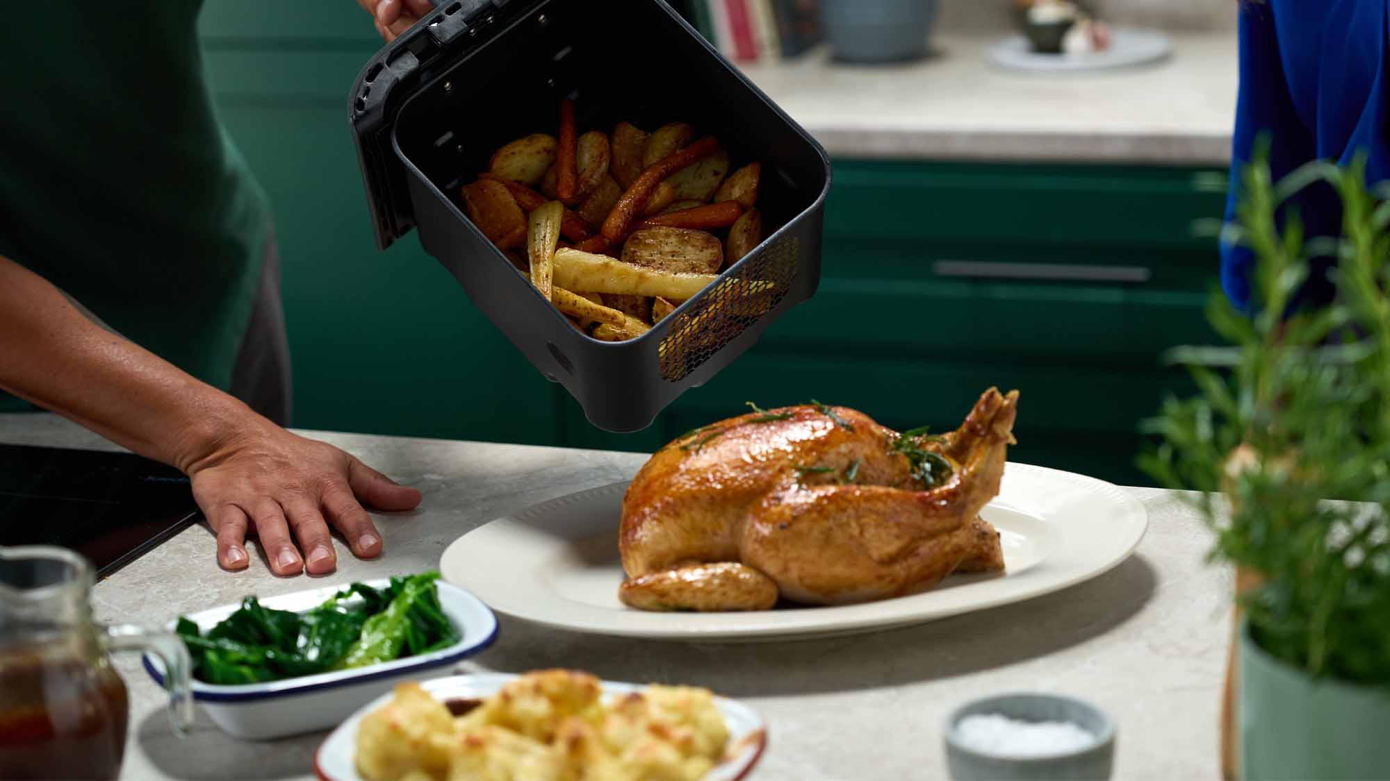 This whole chicken and veg recipe from @LagomChef is a game-changer for busy weeknights or relaxed Sunday dinners. With minimal prep and maximum flavour, the air fryer delivers golden, succulent results in a fraction of the time. Just season, load, and let the air fryer do the magic.
