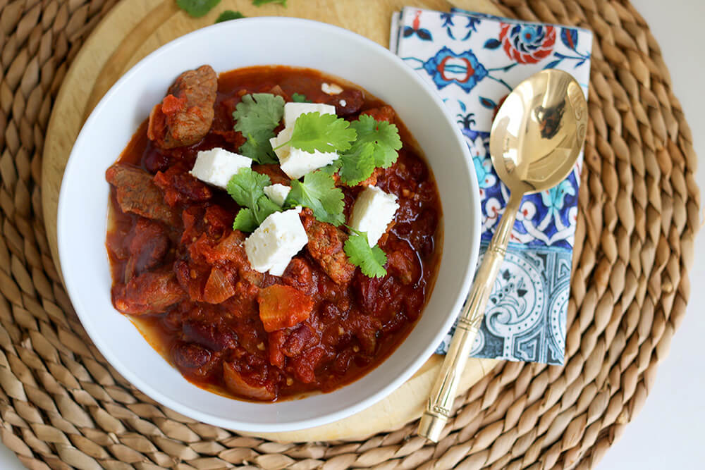 Using the heat most the Chunky cuts of beef and kidney beans make it filling enough as a simple one pot meal but it’s equally lovely with rice. I find it’s also great for batch cooking on a Sunday afternoon, and makes a quick and easy lunch option during the week when you just can’t face another boring sandwich. The addition of feta cheese serves to cool down the heat, or add a dollop of soured cream for an authentic finish as a different option.