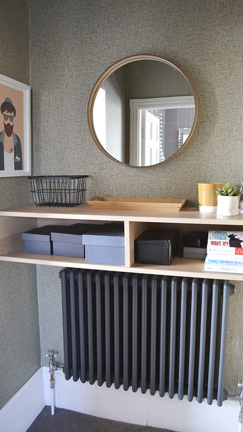 One deal breaker for her, was finding a place to put the TV,” I’m a morning TV addict and cannot get up in the morning without it so this was very important”. In the end the perfect solution was to position it above the radiator, to the left of the window in an unobtrusive spot, but facing the bed, so ideal for watching.