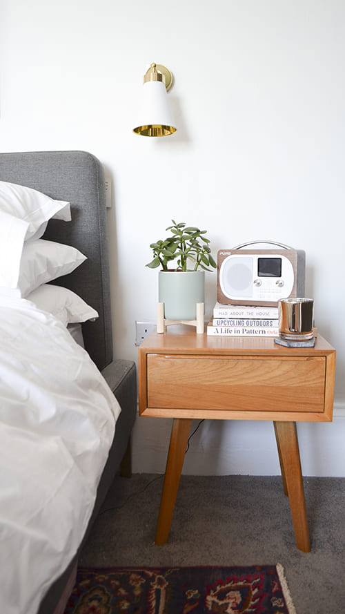 “I pinned, a lot, on Pinterest! I took inspiration from some USA accounts I followed and planned out my moodboard carefully. I knew I wanted a huge rug underneath the bed so re-purposed one I already had in the living room – it fitted perfectly and hid the majority of the grey carpet which I wasn’t that keen on but was unable to replace at that time. I mixed vintage furniture that I sourced from the local community furniture warehouse with some well placed new products and was super happy with the result!”