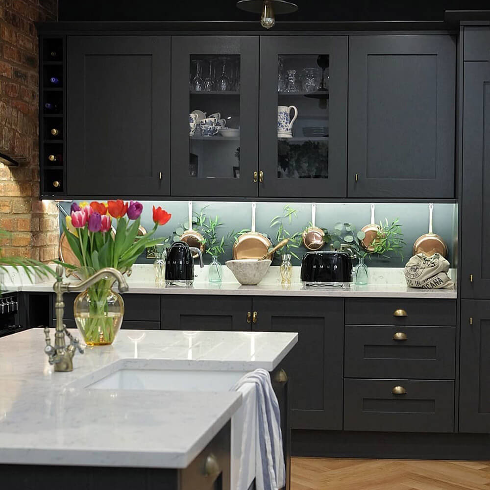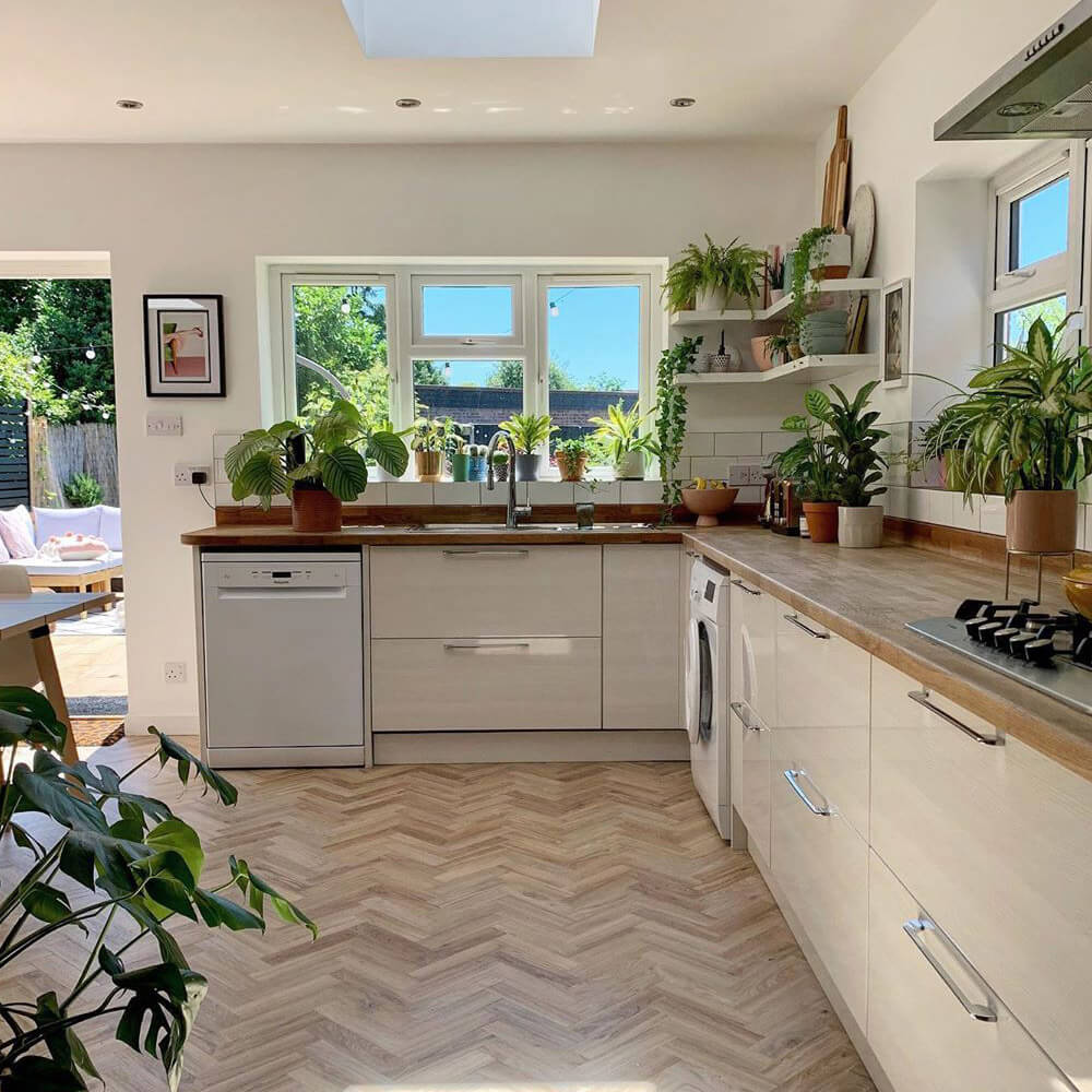 Are you a fan of tiles? A simple trick to make your kitchen look bigger is to tile all the way to the ceiling. It draws people’s eyes upwards to maximise the height of the room and the space there seems to be in it.