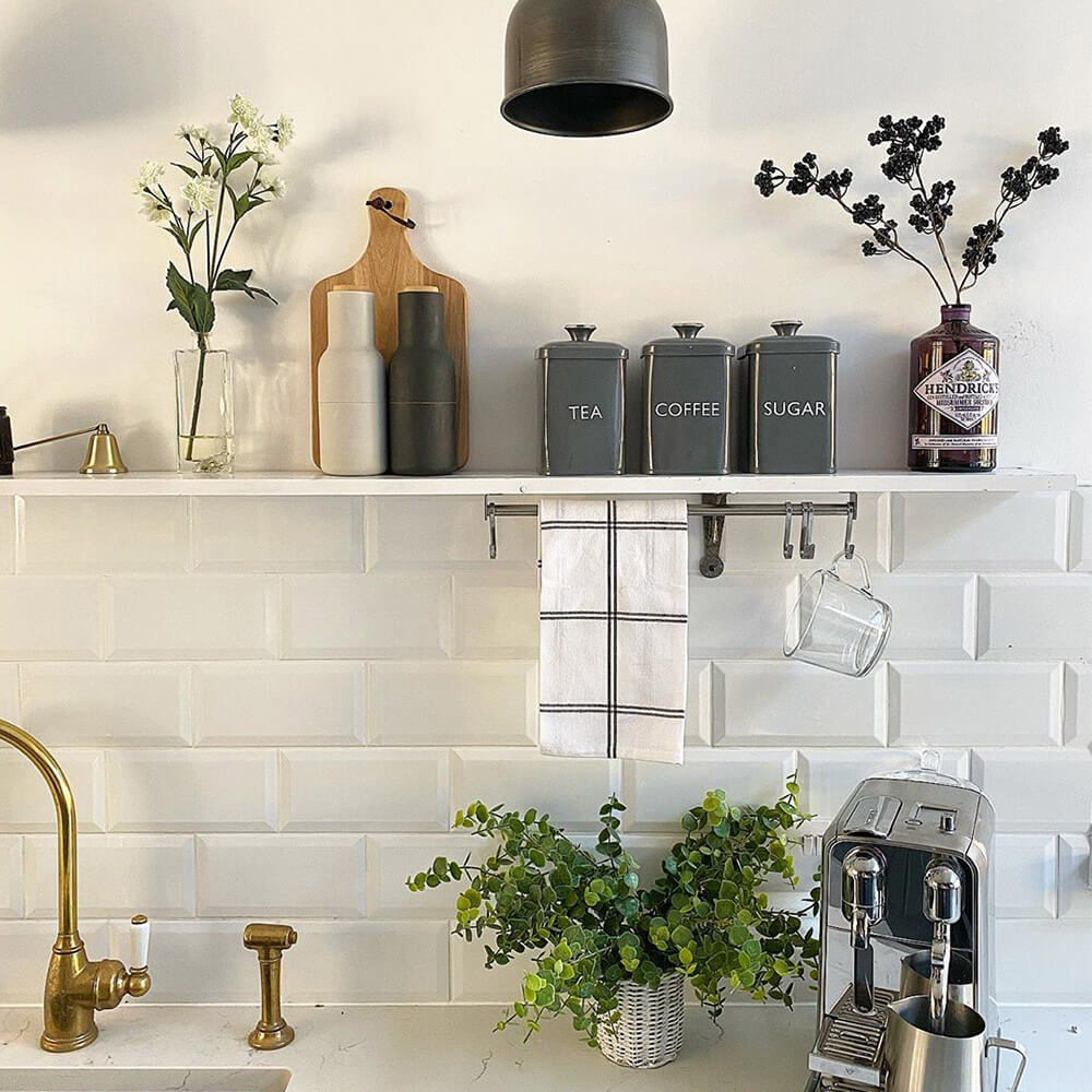 You’ve also got to take advantage of vertical space. Shelving is a great way to tidily store your kitchen essentials when a cupboard is a no-go. From plates to cups and even features pieces, shelves put the walls to work and help save space.