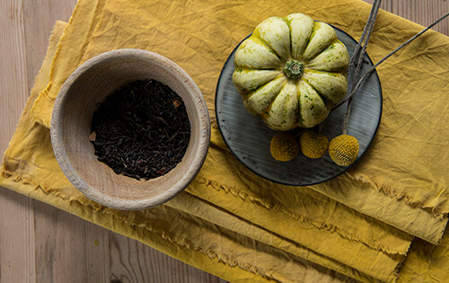 "Autumn is finally upon us and with it the rich colours of turning leaves, colourful pumpkins and richly coloured food. All that makes me want to bring a little of those warm, jewel-like colours into my home. Fabric is something I like to work with as it’s easy to change according to seasons. I’m not suggesting that you change anything like your curtain colours on a regular basis, but instead add small accessories like napkins or a table cloth."