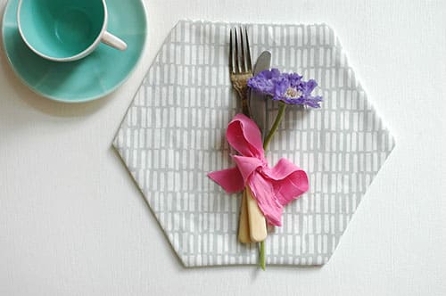 "I recently got a new dining table, but realised I didn’t have any placemats, firstly to protect it and secondly to look lovely when I lay the table! It’s surprisingly tricky to find nice shop bought versions, so making your own is a simple way to have exactly what you want, both in colour, fabric and shape. I decided to go for a hexagonal shape, for something a little bit different!"
