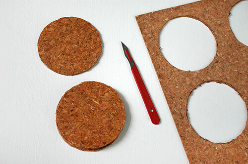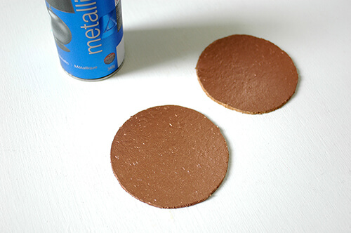 In a ventilated area (outdoors ideally) spray the shinier side of the cork with copper spray paint. Leave to dry.