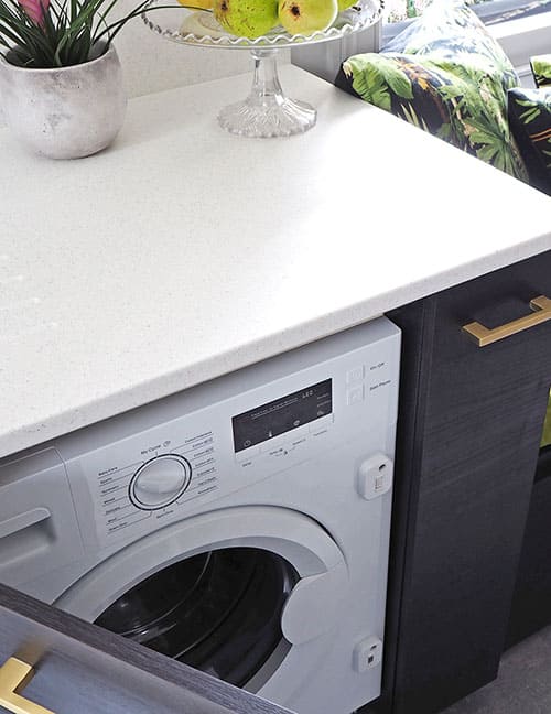 “It makes such a difference looking into the kitchen from the hall and not being able to see the dishwasher and washing machine. I also wanted a ’non-kitcheny’ kitchen – a place that feels nice to hang out in and I think integrated appliances really help to achieve that.”