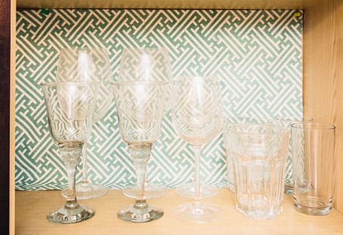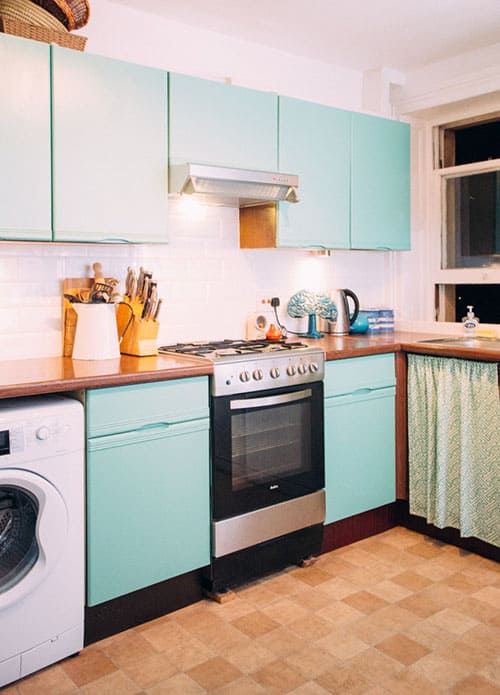 For an extra fancy touch, line the back of the cupboard with some wallpaper or fabric, and you’ve got an easy new look that no reasonable landlord could have a fit over.