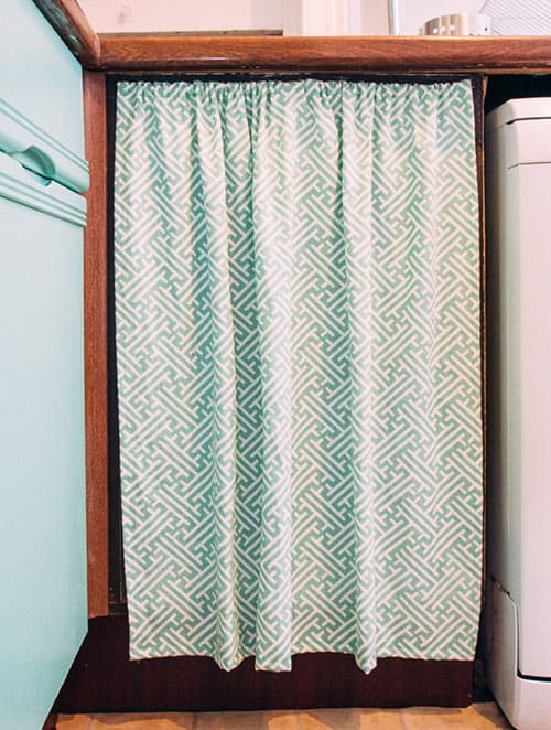If you want to make a non-permanent change, but would prefer to keep your cupboard secrets hidden away, you could remove the doors and replace them with neat little curtains.