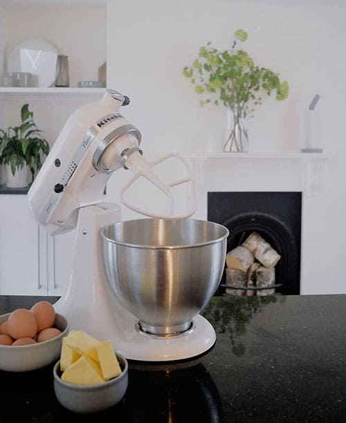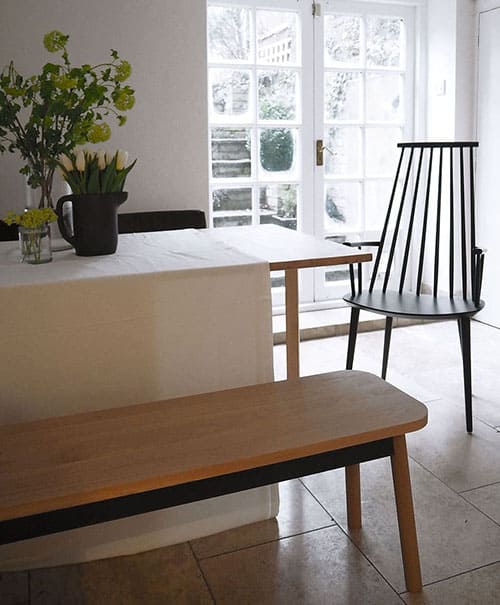 My main advice for adding personal style is having small investment pieces on display. Not a new fridge but small appliances like a kitchen mixer. I have a KitchenAid mixer, in white of course (perfectly minimal), this mixer is iconic and adds instant style and personality to the room. Along with a KitchenAid, I’ve invested in a statement chair and a beautiful bench.