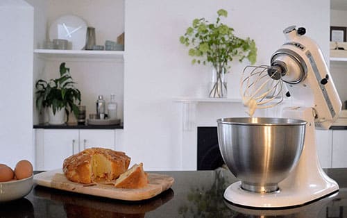 The muted monochrome palette flows through each area of the room and by displaying items that I love, especially the KitchenAid, I’ve created a kitchen that reflects my style without too much fuss.