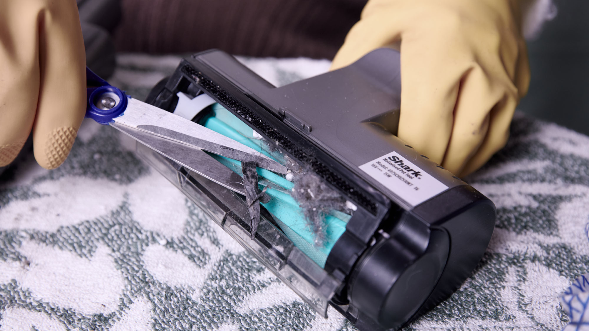 Most models come with a nozzle, so check this first for any blockages, then wipe it down with a damp cloth and let it air dry. If yours comes with a brush, pull out any loose bits, and use scissors to sort out any tightly wrapped strands.