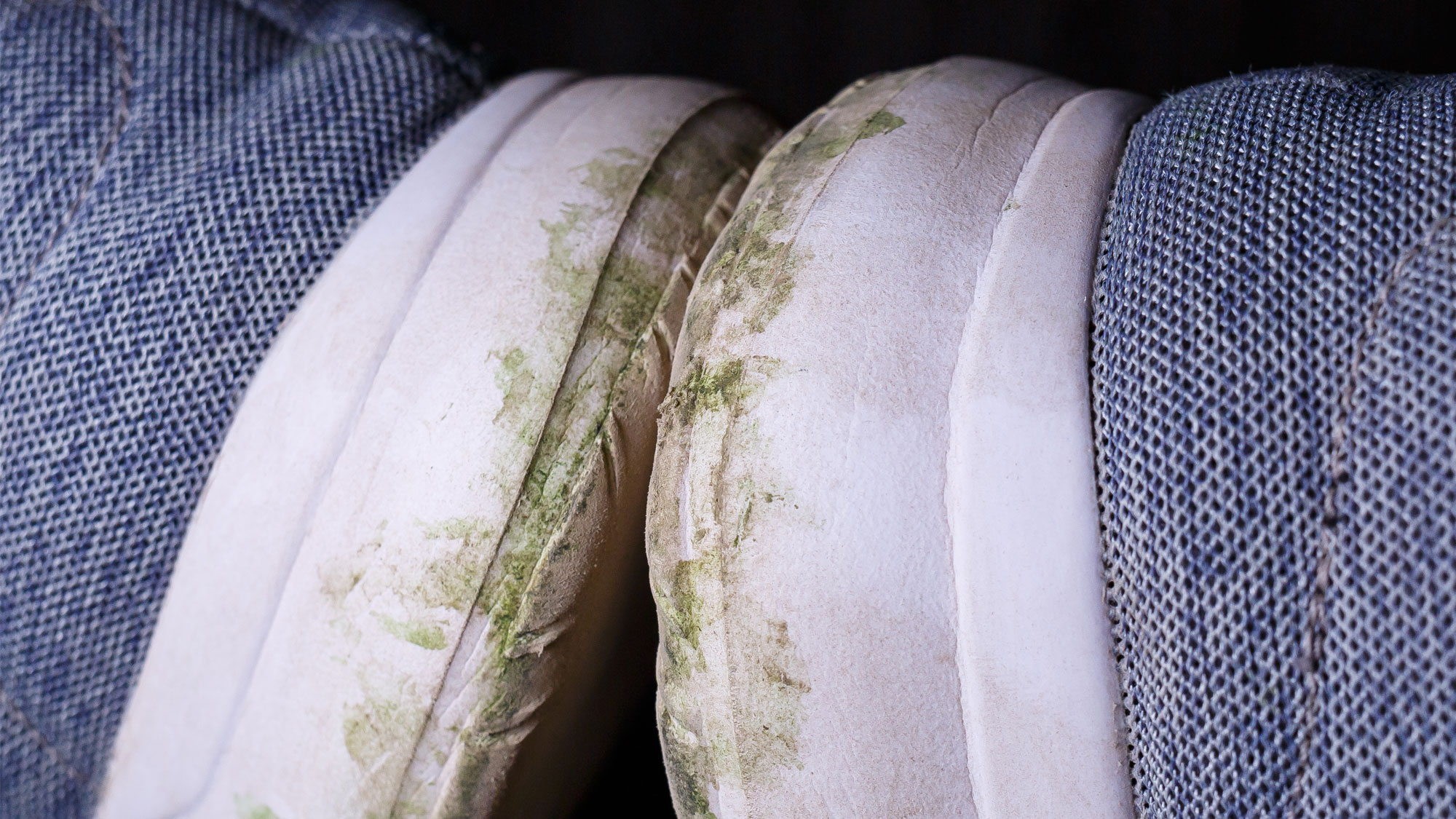 Run your trainers under the cold tap to flush out as much of the grass stain as possible – fresh stains are much easier to remove than set-in ones. Then, use your toothbrush to scrub away any loose dirt or grass hiding in the grooves or treads of your trainers.