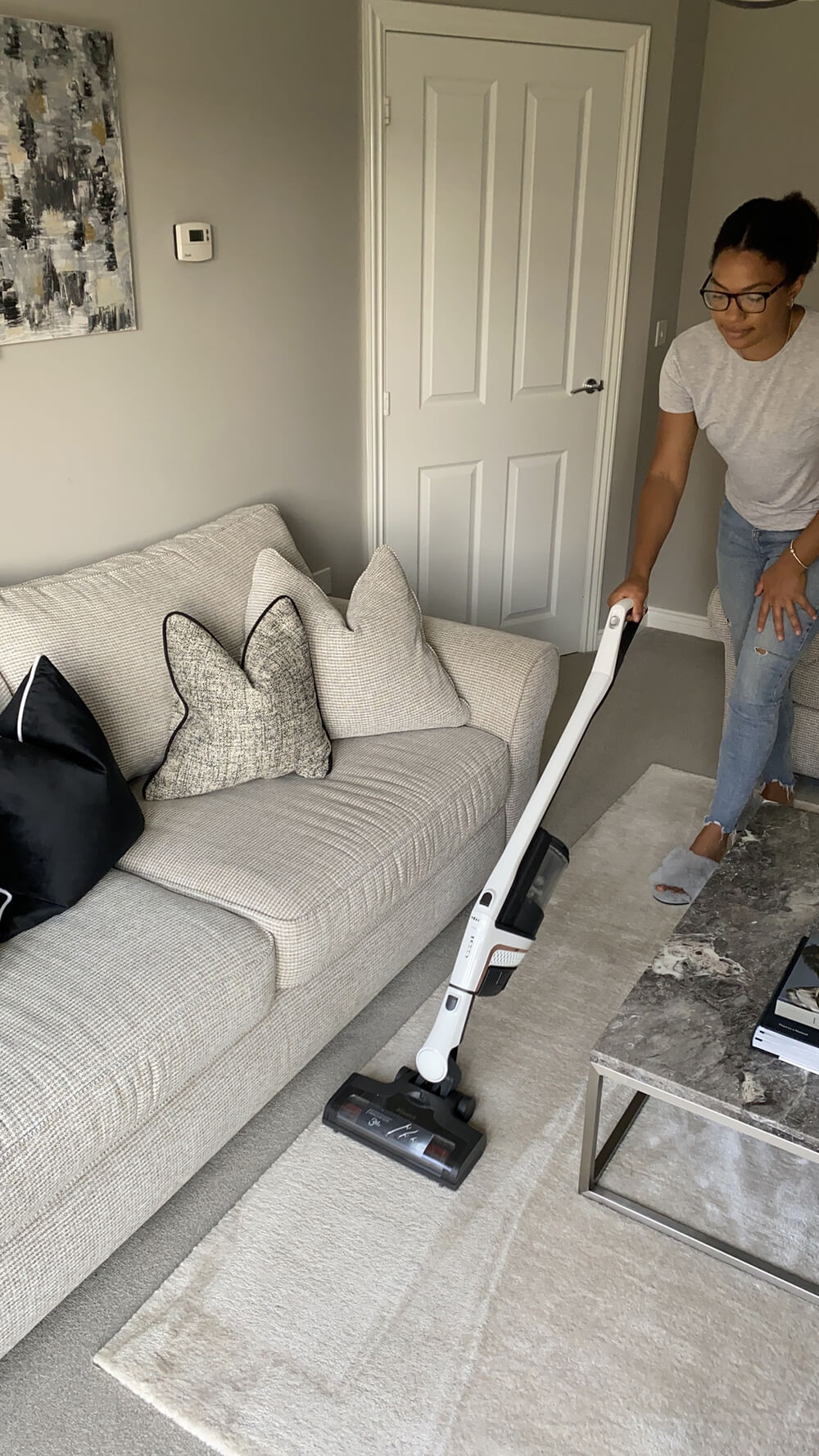 It performs better than my existing corded vacuum (from a very well-known brand) which is amazing because it’s battery operated! I’m not sure I want to admit this, but I’ve never seen dust and dirt collected like this before. I thought I was a clean freak; I had no idea this was lingering in my soft furnishings and floors! It gives the carpets a deep clean and you can really tell by how fresh a room feels once you’re done. I’m even convinced it sucks dust particles out of thin air!