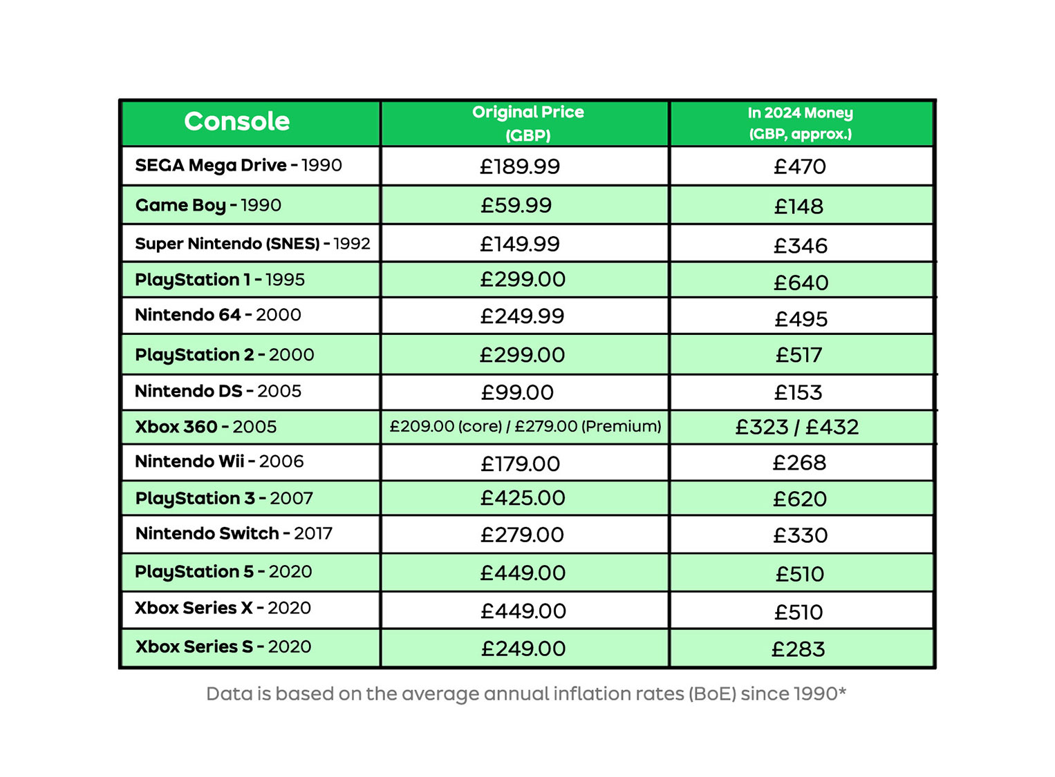 * UK Console Launch Prices (Original RRP vs 2024 Equivalent)