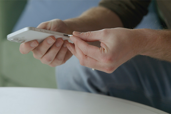 1. On the side of the phone, there’ll be a small tray where the SIM goes. Take the key included in the box and insert into the small hole. Give it a push and it’ll eject the tray. Slide the tray out with your fingers, then grab your SIM card.