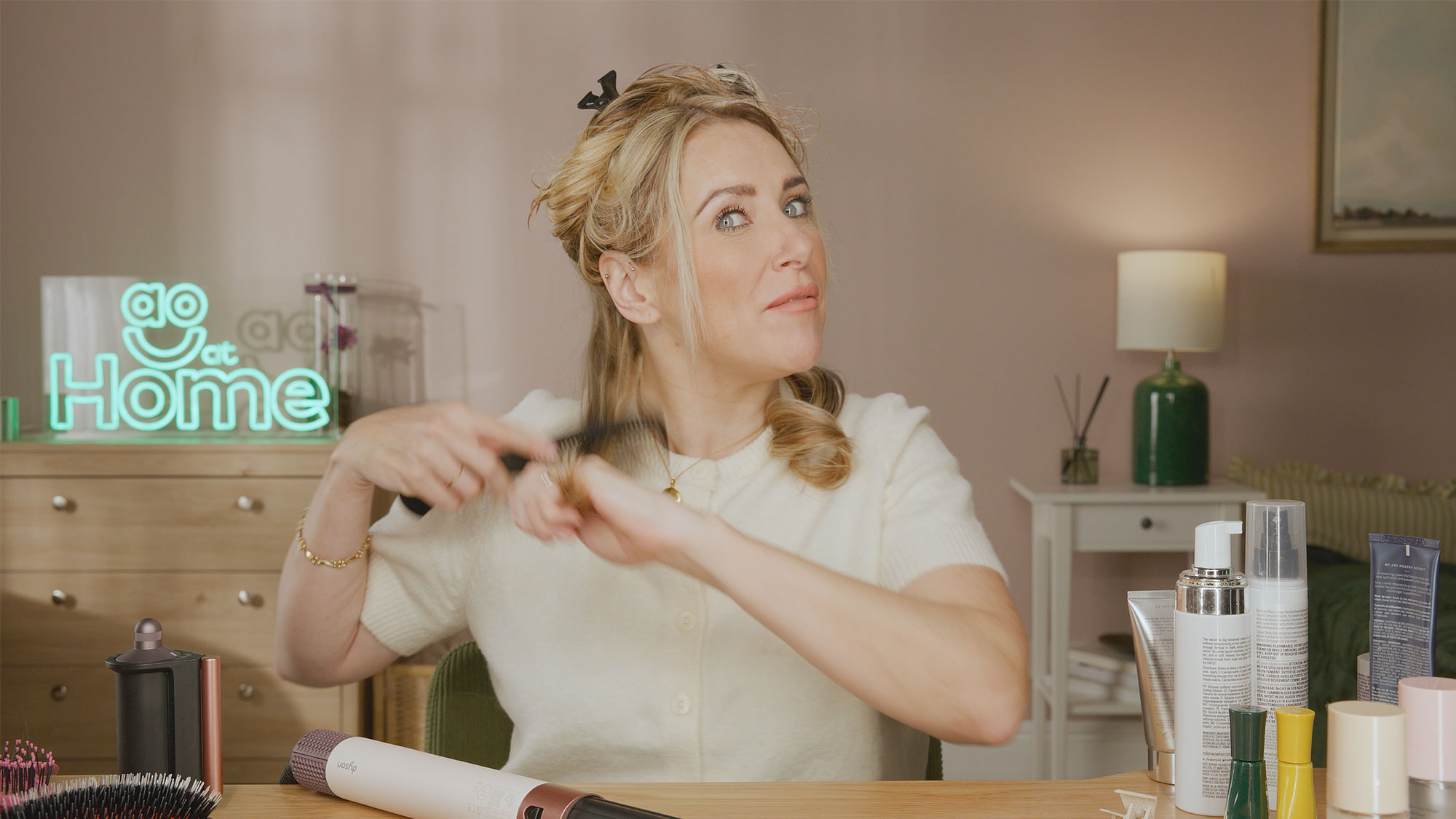 Place the 40mm Airwrap barrel on top of the ends of your hair, rolling it upwards to create the flick. Repeat this all the way around each section.