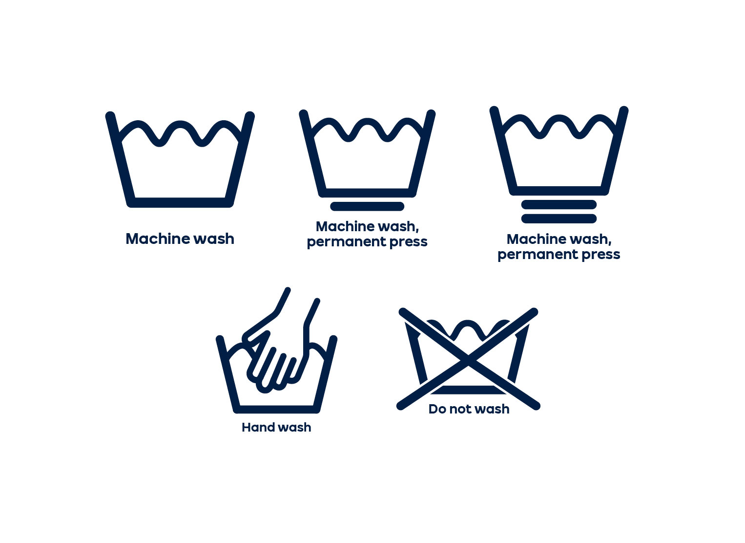 If there is a line under the machine wash symbol, this means ‘permanent press’. This refers to a fabric that has been treated to minimise creases, so it needs a different kind of cycle to help preserve that treatment. It needs a mild cycle with warm water, a cold rinse and less agitation than a normal cycle.