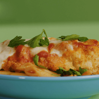 Making chicken Parmesan is easy with a Ninja Multi-Cooker. Use the pressure setting to get the pasta started, the air crisp setting to give the breaded chicken the perfect texture, and finish strong by using the grill setting to melt the cheese. Simple.