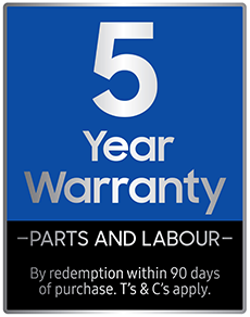 Requires registration from www.samsung.com/uk/fiveyearwarranty within 90 days of purchase. Terms and conditions apply