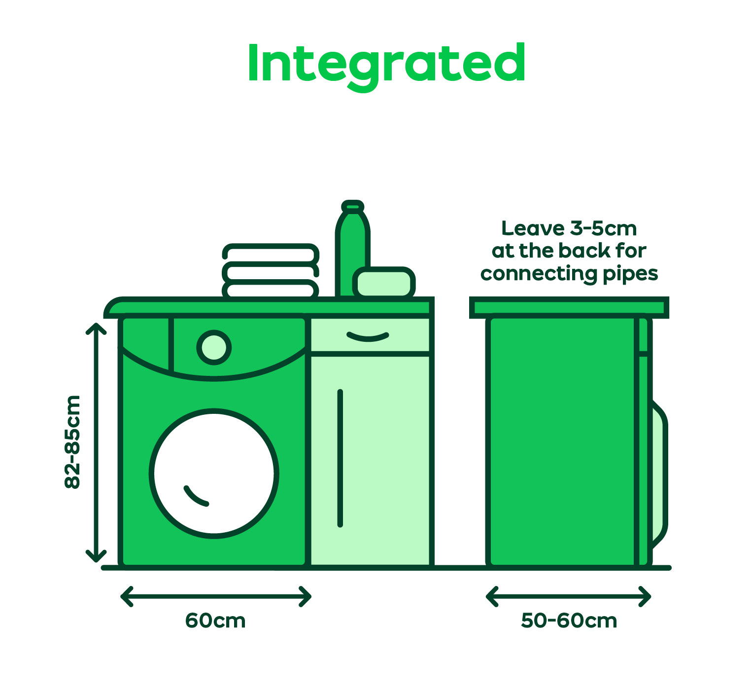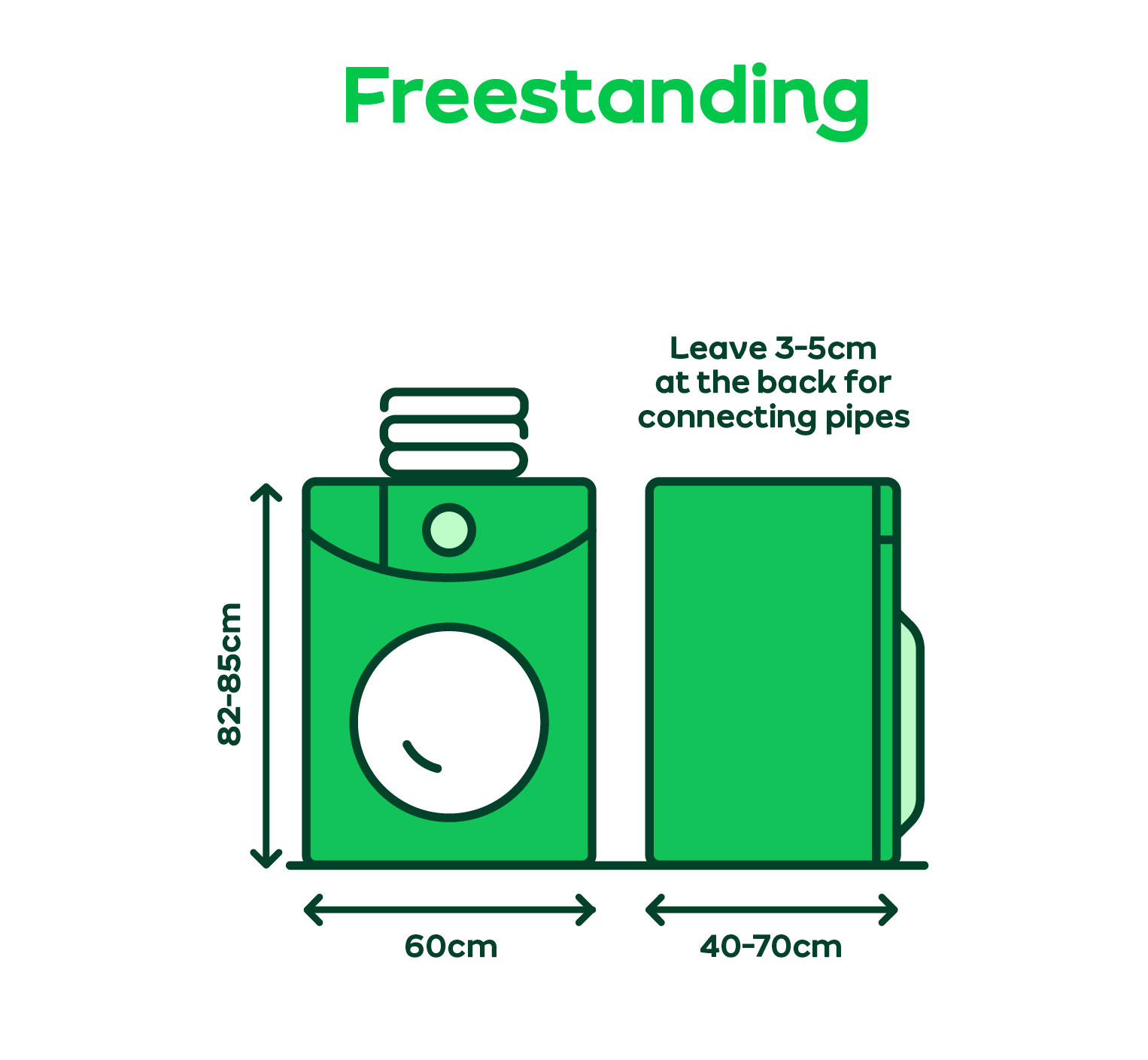 You’ll need around 5-15cm behind the machine for plugs and pipework, we recommend measuring in front of them instead of from the wall.