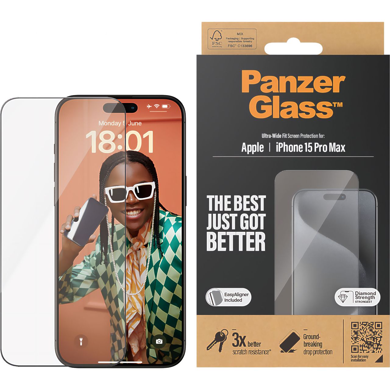 PanzerGlass Screen Protector for iPhone 15 Pro Max - Ultra-Wide Fit
