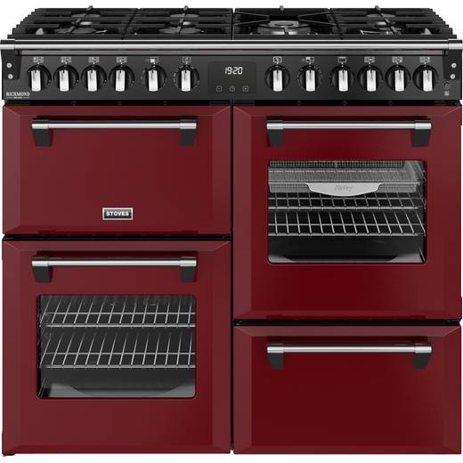 Stoves Richmond Deluxe 100DF 100cm wide Dual Fuel Range Cooker with Gas Hob - Garnet Red - A Rated