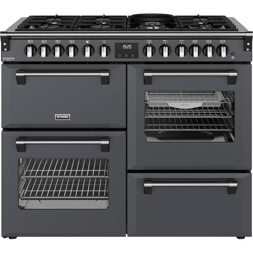 Stoves Richmond Deluxe 110DF 110cm wide Dual Fuel Range Cooker with Gas Hob - Anthracite - A Rated
