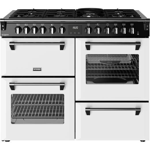 Stoves Richmond Deluxe 110DF 110cm wide Dual Fuel Range Cooker with Gas Hob - Ice White - A Rated