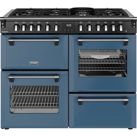 Stoves Richmond Deluxe 110DF 110cm wide Dual Fuel Range Cooker with Gas Hob - Twilight Blue - A Rated