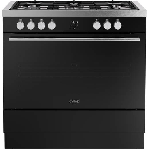 Belling BEL RCA VISION SGL 90DF 90cm wide Dual Fuel Range Cooker with Gas Hob - Black / Silver Steel - A Rated
