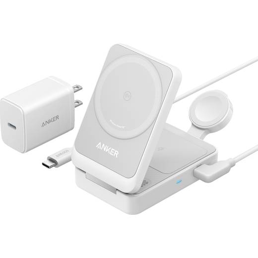 Anker MagGo 3-in-1 Folding Wireless Charging Station 40 Watt MagGo Wireless Charging Station (Foldable 3-in-1) for iPhone 12 and Above, Apple Watch 7 and Above, AirPods (With Wireless Charging Case) And More - White